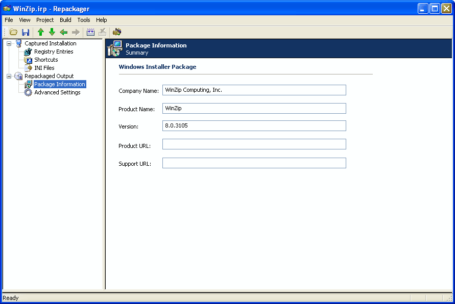 The Package Information view allows you to specify information for the Windows Installer package that you build from the Repackager project. Much of this information may be prepopulated based on settings used in the Repackaging Wizard.