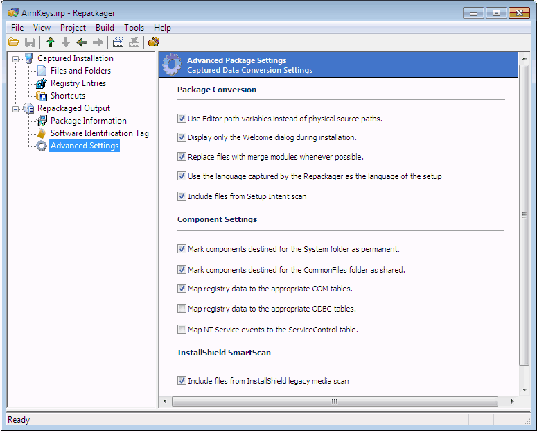 1. In the Repackager interface, open the Repackager project that you want to convert to an InstallShield Editor project.