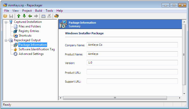 6. Select Package Information from the View List. The Package Information view opens, where you can specify information for the Windows Installer package that you build from the Repackager project. Much of this information may be prepopulated based on settings used in the Repackaging Wizard.