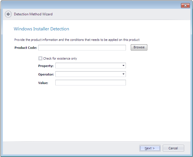 Detection Method Wizard / Windows Installer Detection Panel