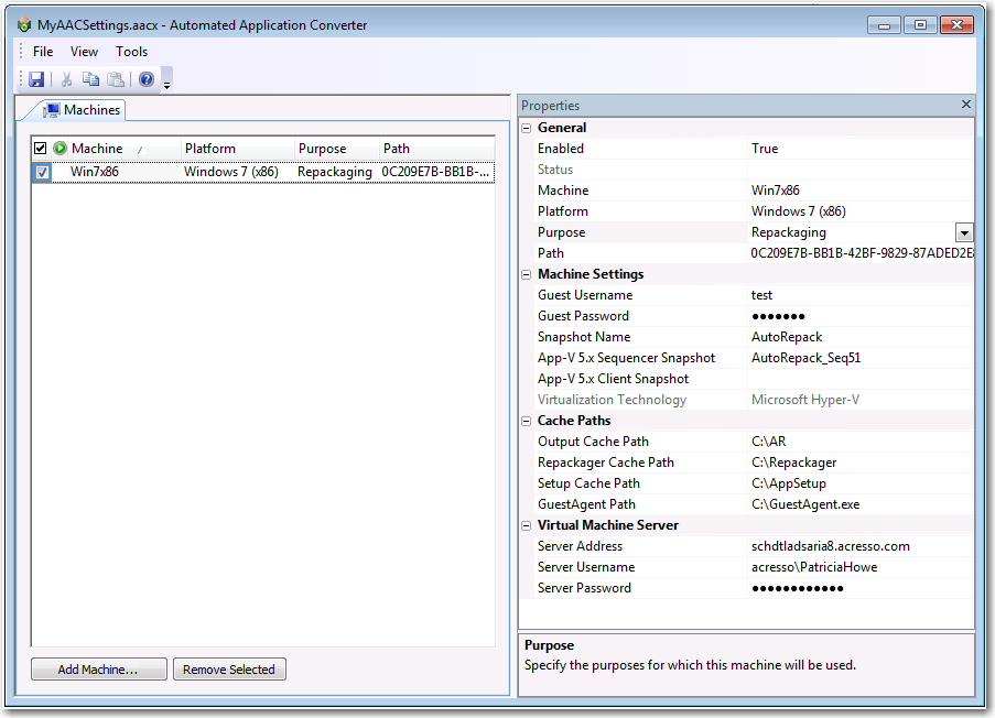 - Click Edit Settings . A limited version of Automated Application Converter opens, displaying the Machines tab.